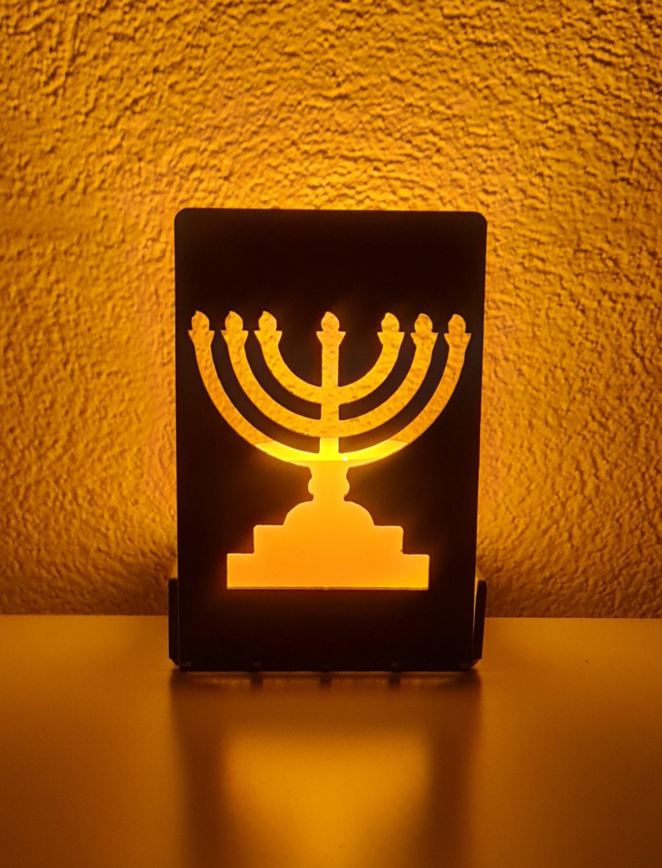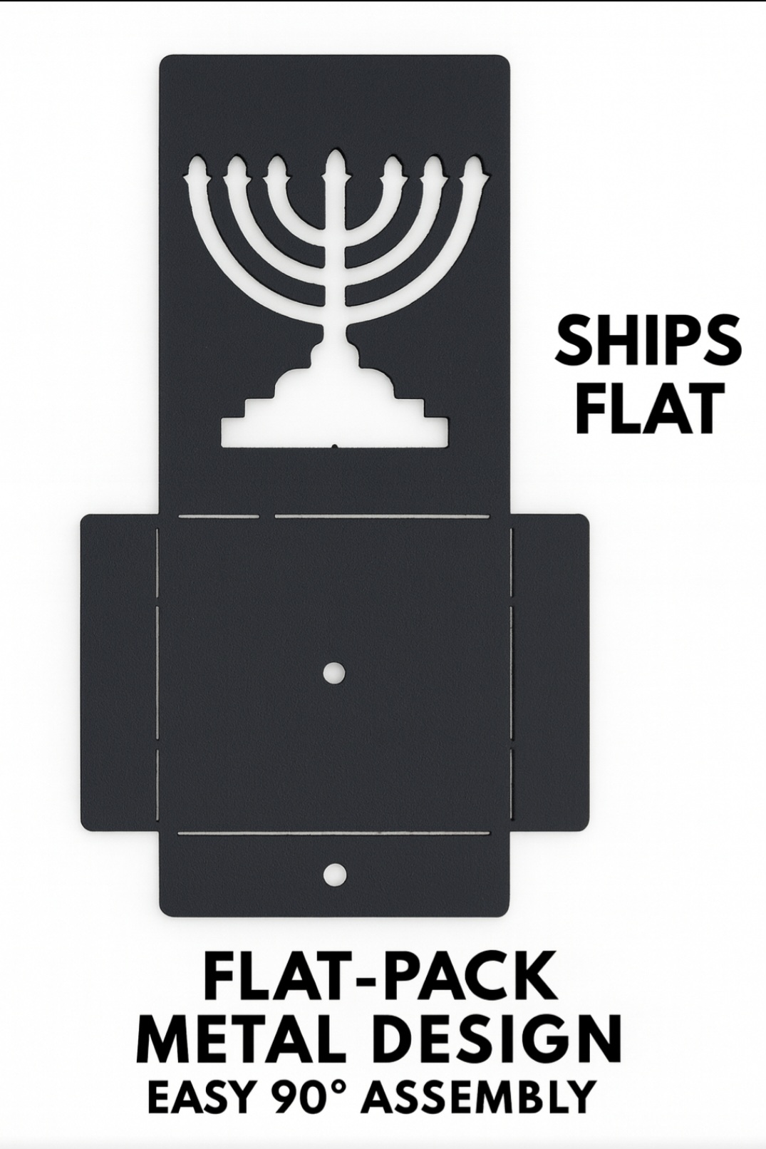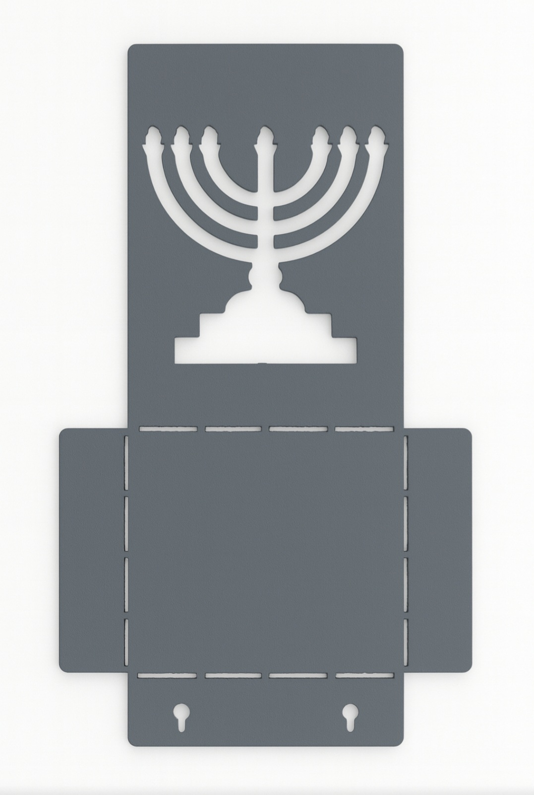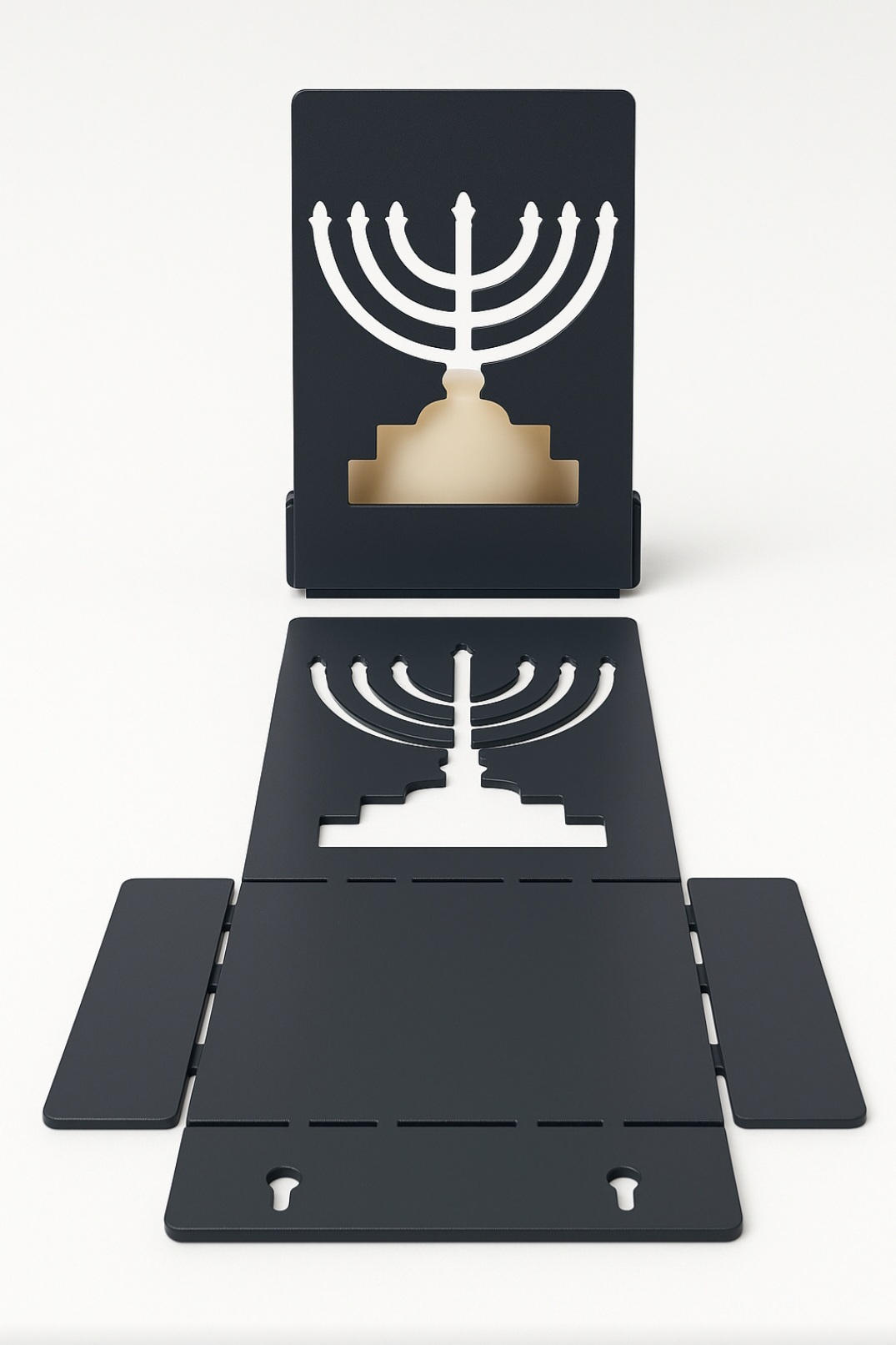 Candle Holder with Temple Menorah Laser-Cut Design (Aluminum, Foldable 2D to 3D)