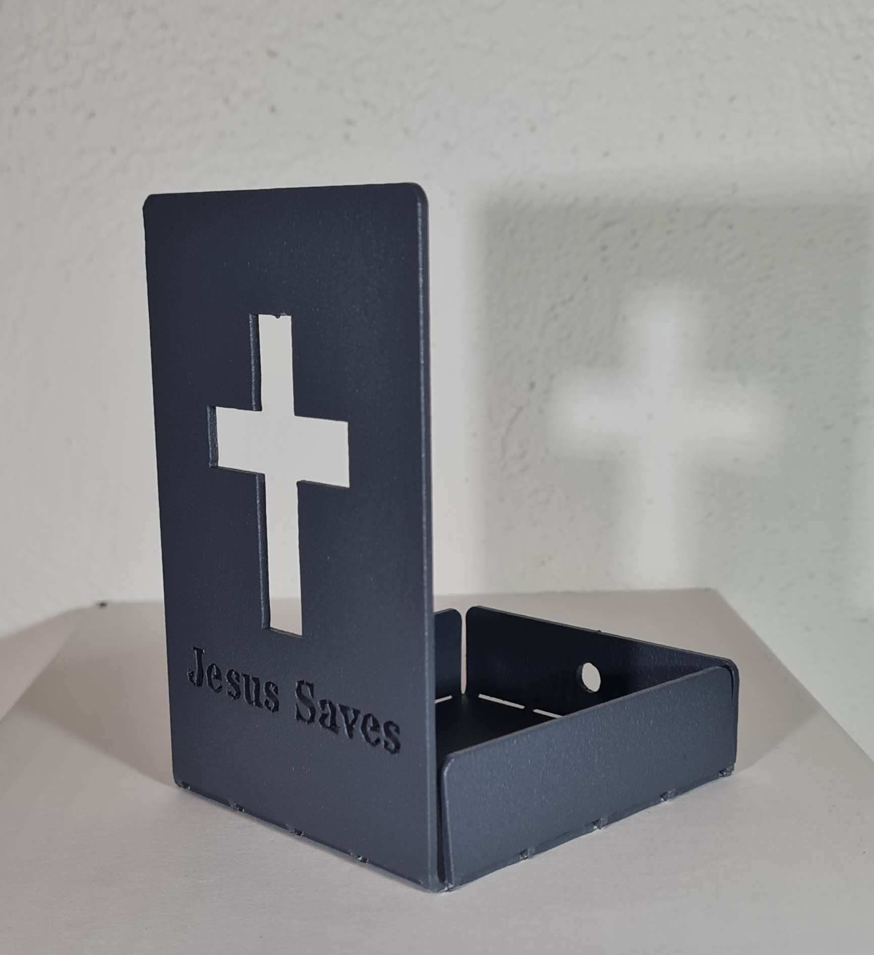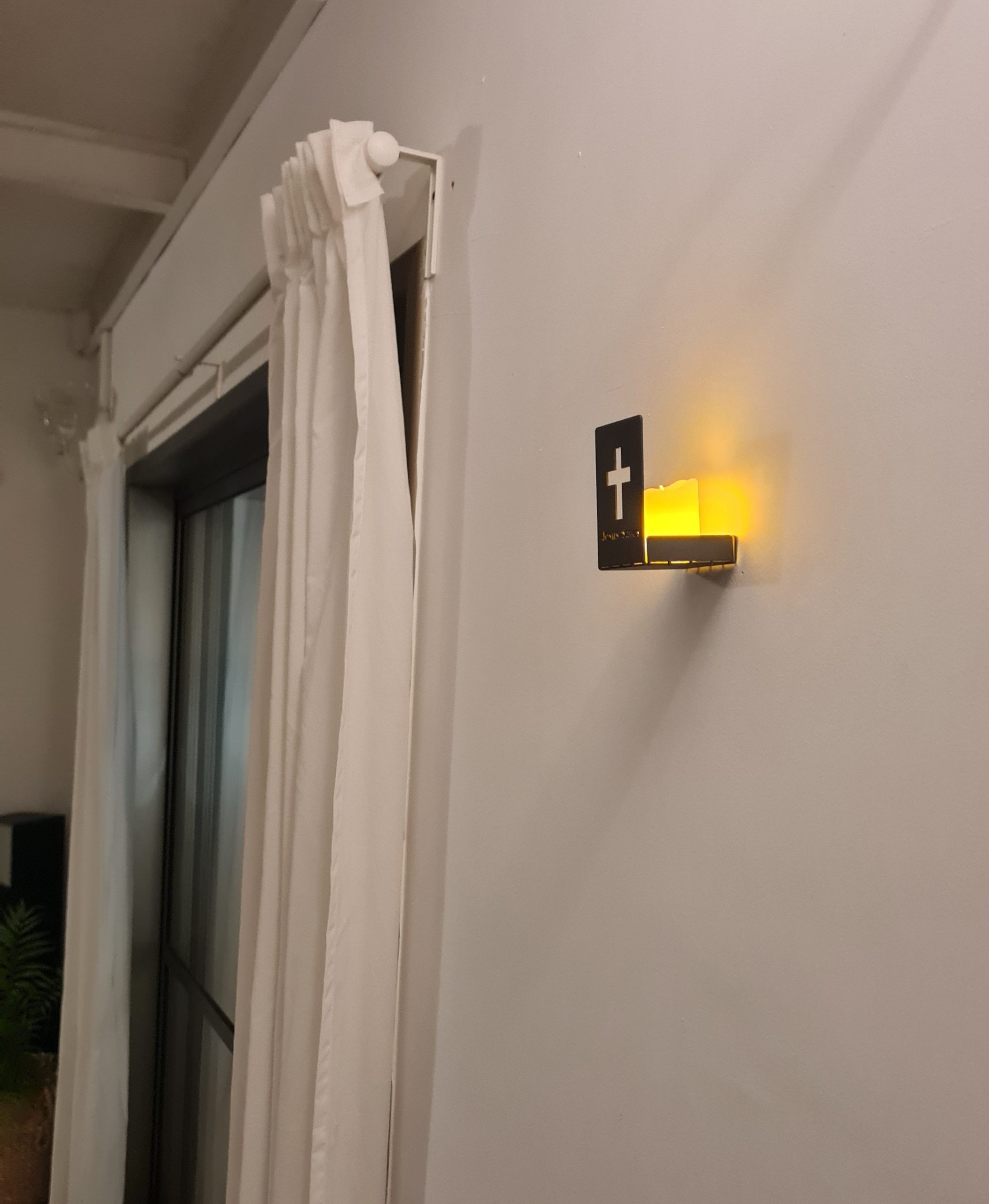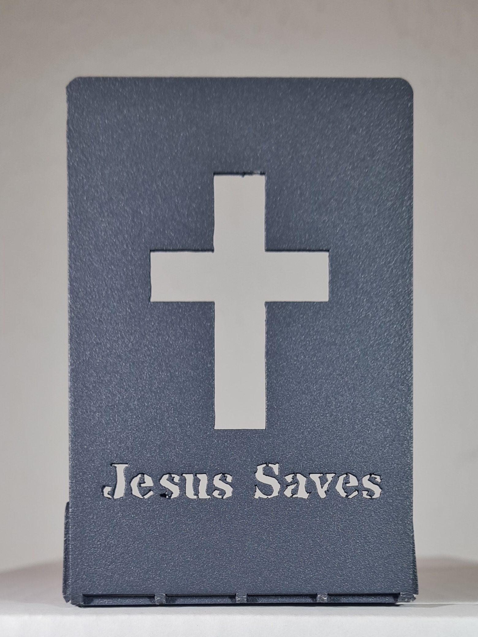 This unique LED candle holder is made from lightweight aluminum and finished with a durable gray powder coating. Featuring a precision laser-cut cross design with the inscription “JESUS SAVES,” it creates a warm and meaningful glow when used with a flameless LED candle.