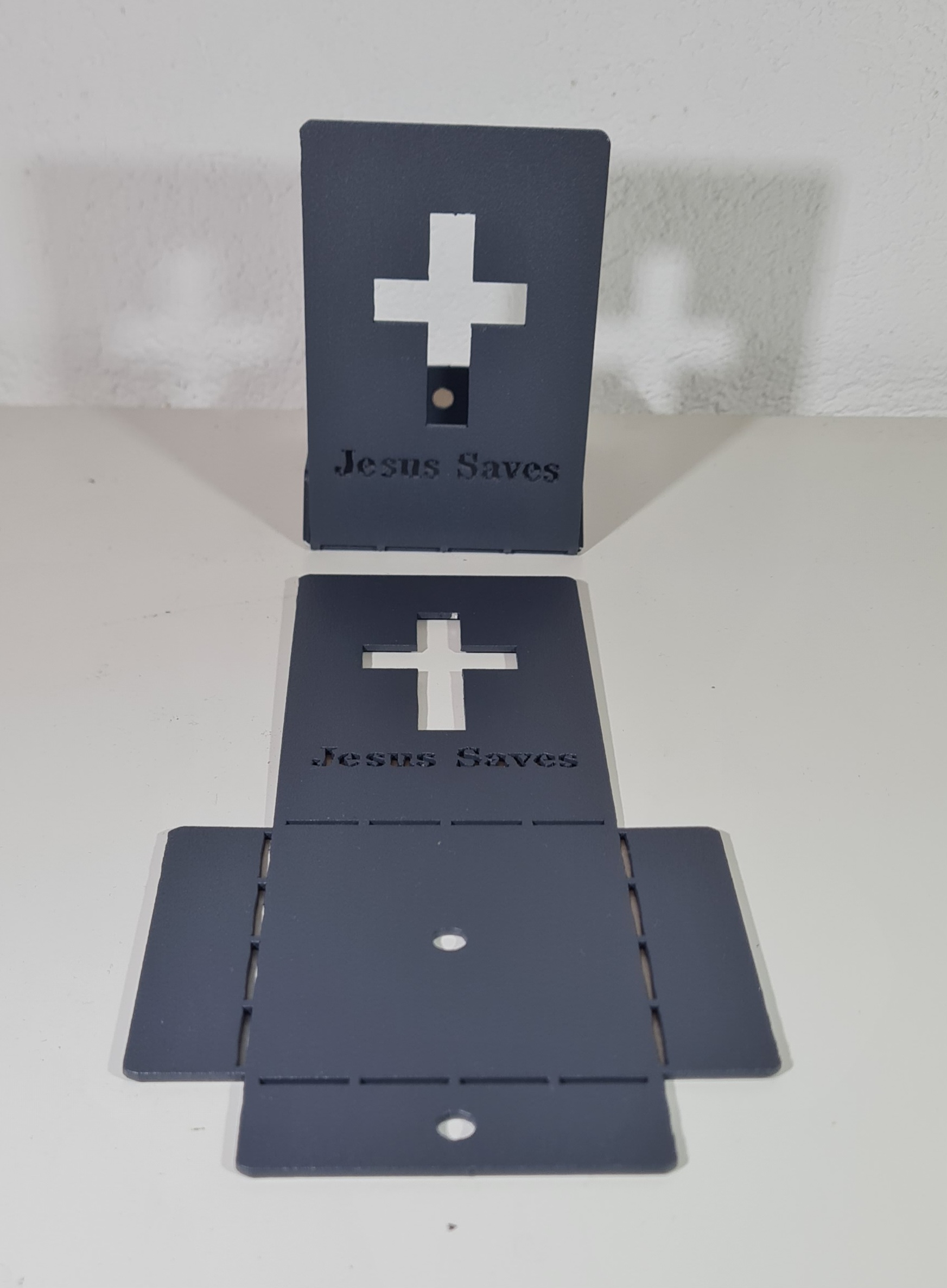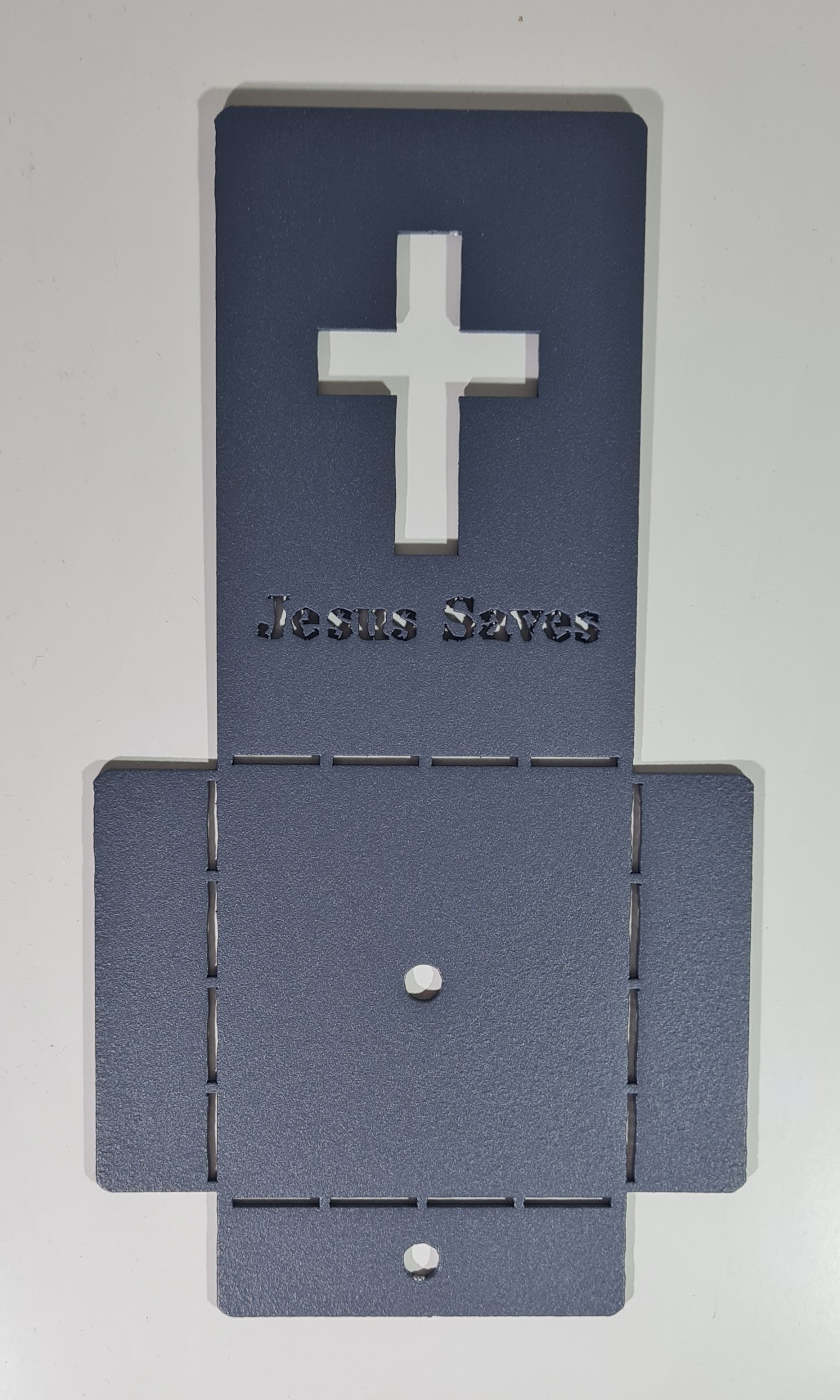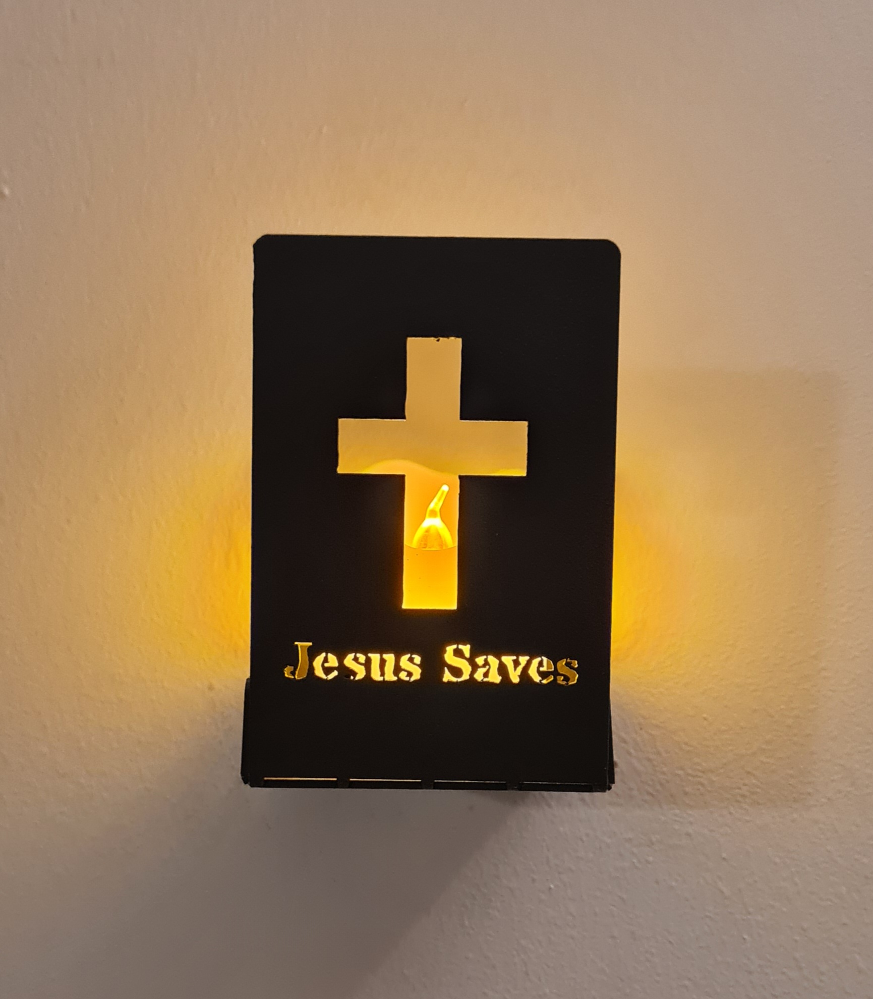 LED Candle Holder with Laser-Cut Cross Design and “JESUS SAVES” Inscription (Aluminum, Foldable from 2D to 3D)