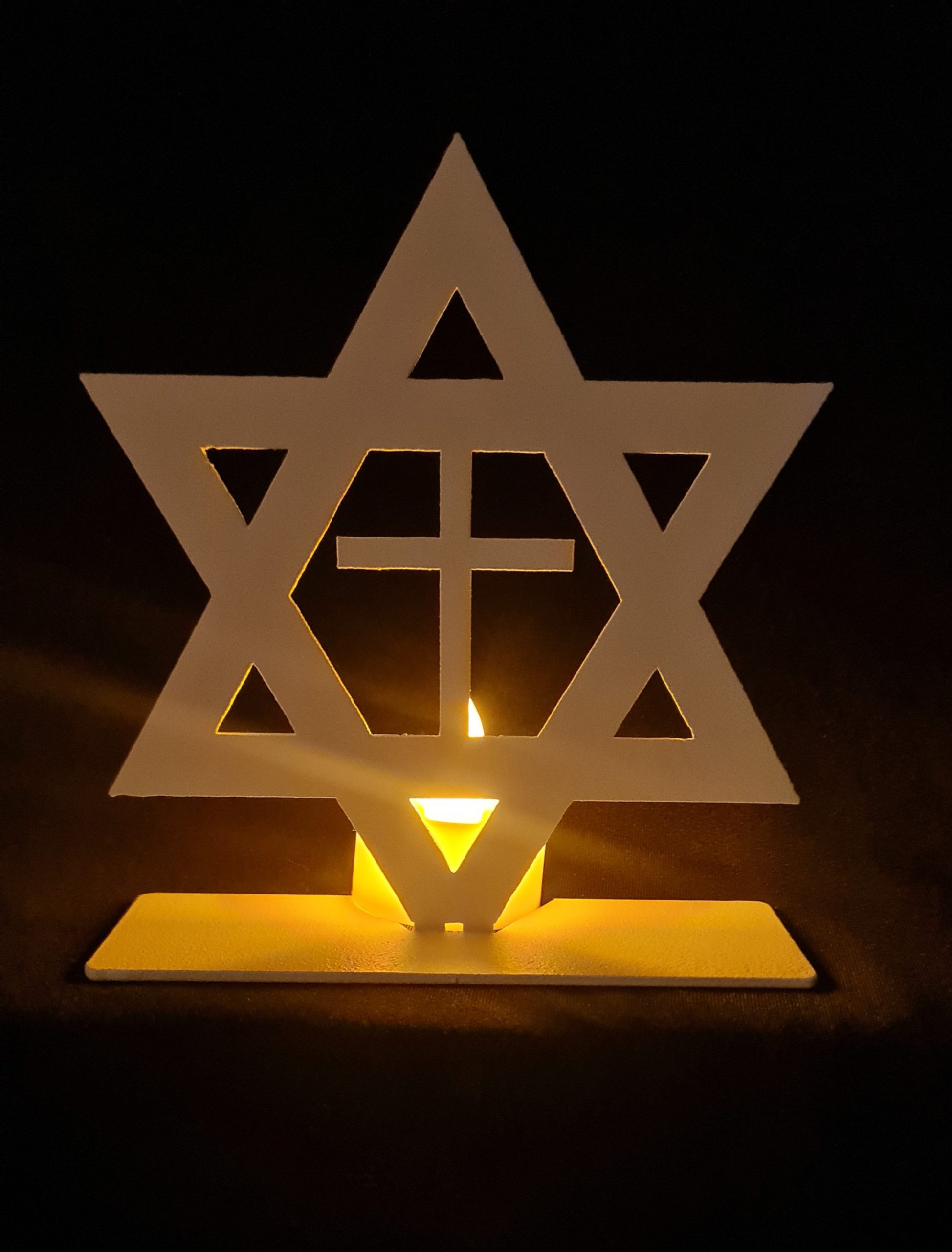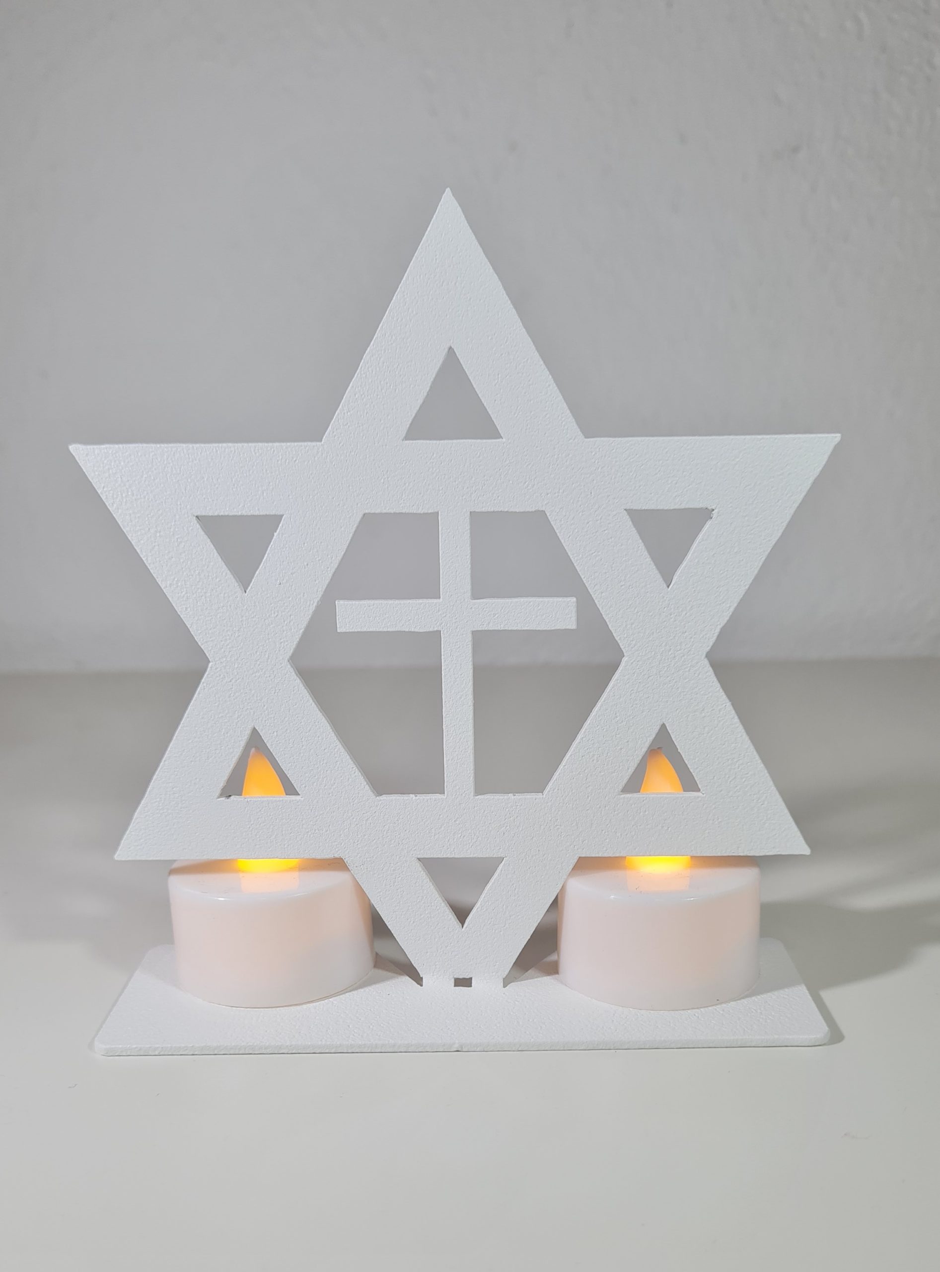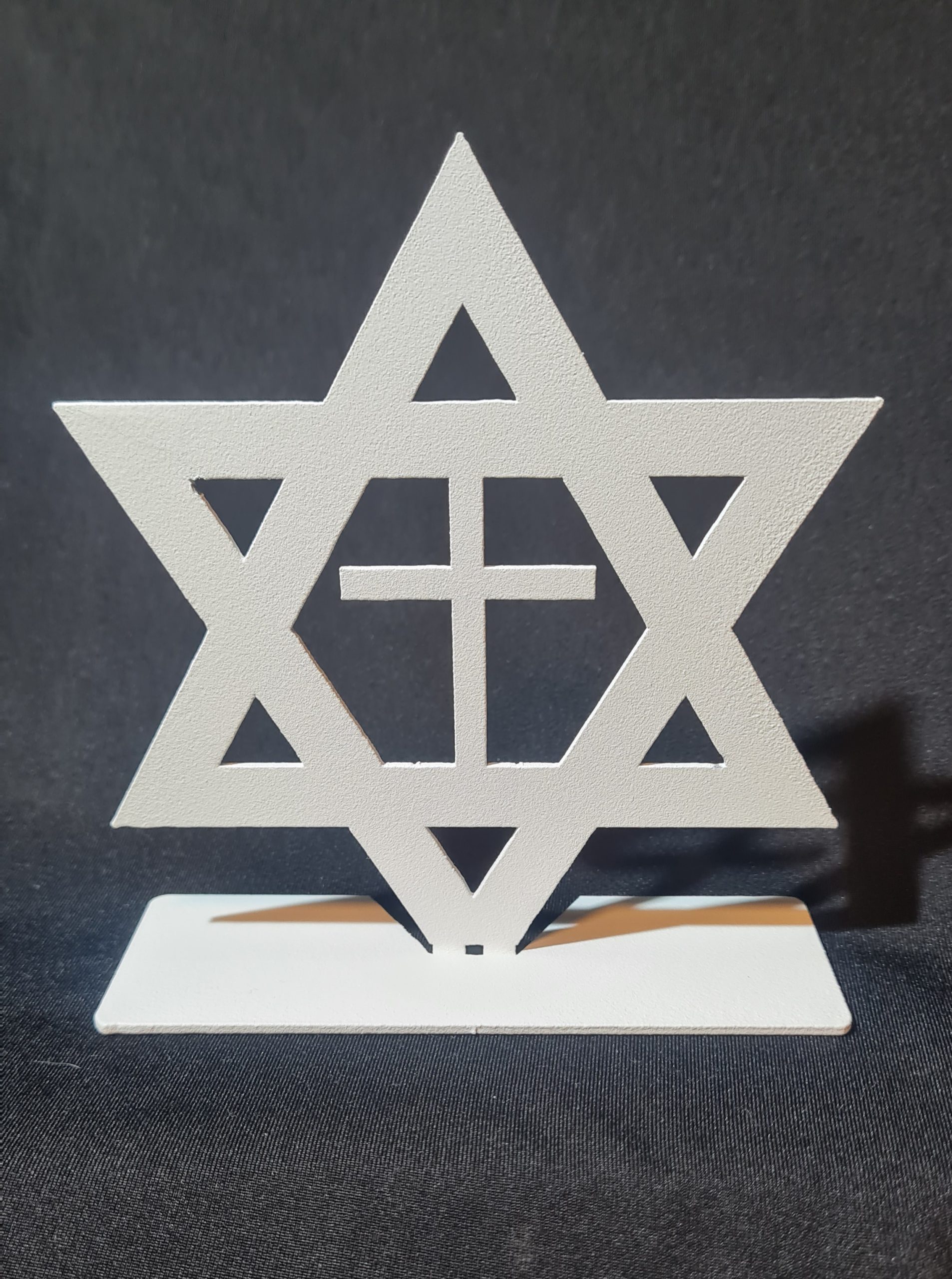 Laser-Cut Star of David and Cross Design (Aluminum, Foldable from 2D to 3D, White Finish)