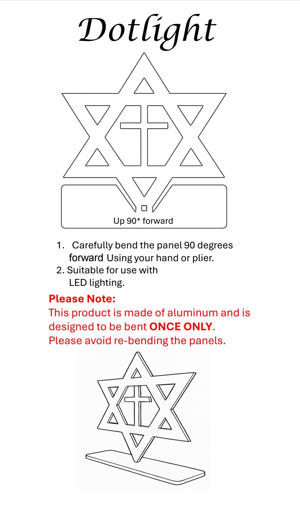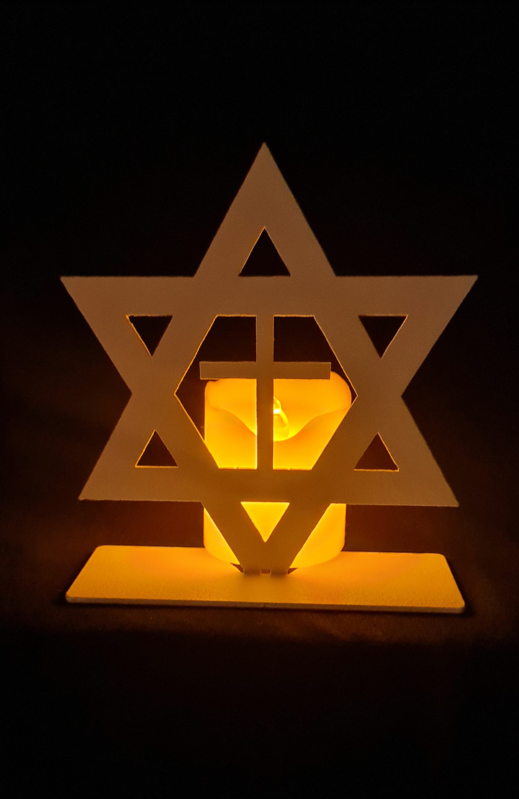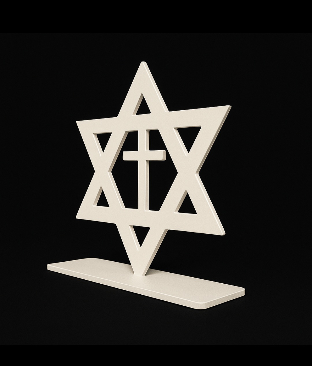 Laser-Cut Star of David and Cross Design (Aluminum, Foldable from 2D to 3D, White Finish)