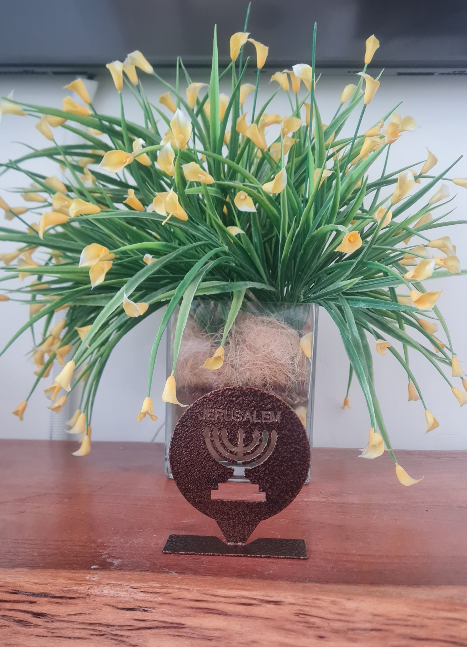 Inspired by the spirit of “Jerusalem of gold, copper, and light,” this piece brings a warm and distinctive presence to any space.