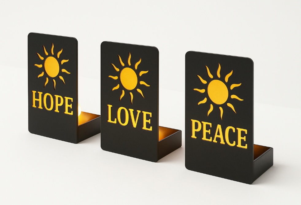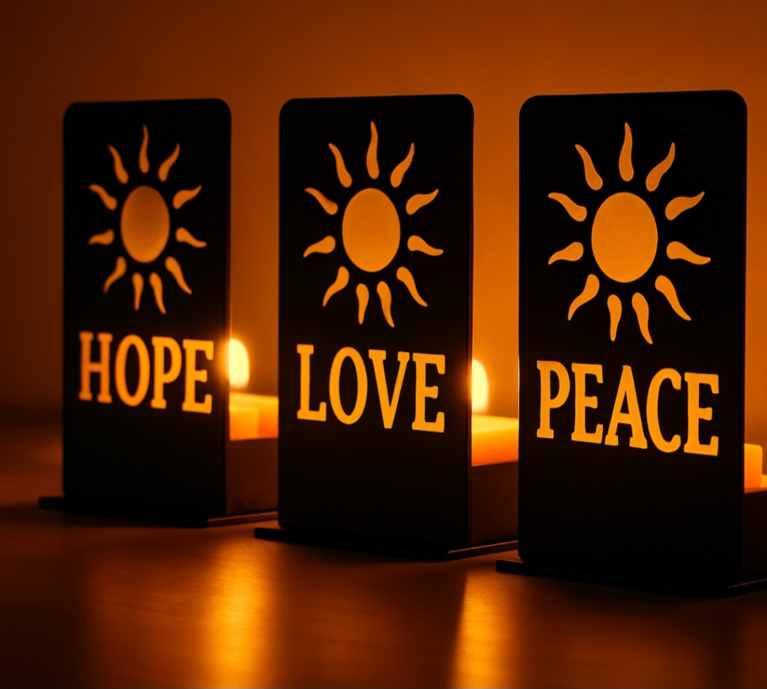 Custom laser-cut aluminum designs with personalized text, colors, and dedications—such as memorial pieces for loved ones, company names, café signage, gifts, and special occasions.